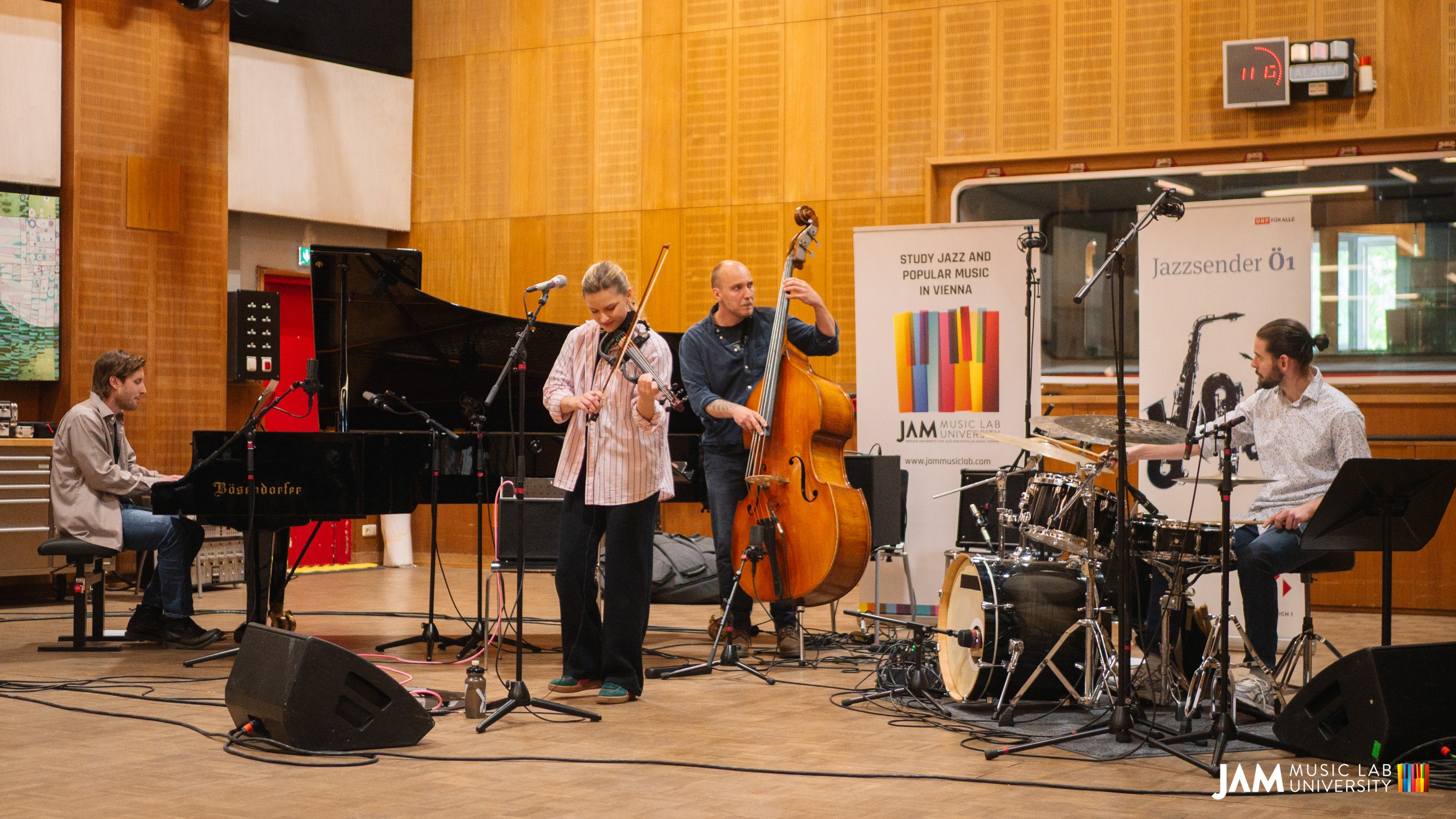 Die Finalrunde des Ö1 Jazzstipendium 2026 fand im Funkhaus Wien, Studio 2, statt. Sechs außergewöhnliche Finalist:innen präsentierten sich dort live vor einer hochkarätigen Jury. Das Stipendium zählt zu den sichtbarsten Förderformaten für den Jazz-Nachwuchs in Österreich und verbindet junge Jazz-Talente, musikalische Hochschulbildung und die lebendige Welt des zeitgenössischen Jazz in Wien. Auf der aktuellen JAM-Seite wird das Ö1 Jazzstipendium als Vollstipendium für ein zweijähriges Bachelor- oder Masterstudium an der JAM MUSIC LAB Private University beschrieben.